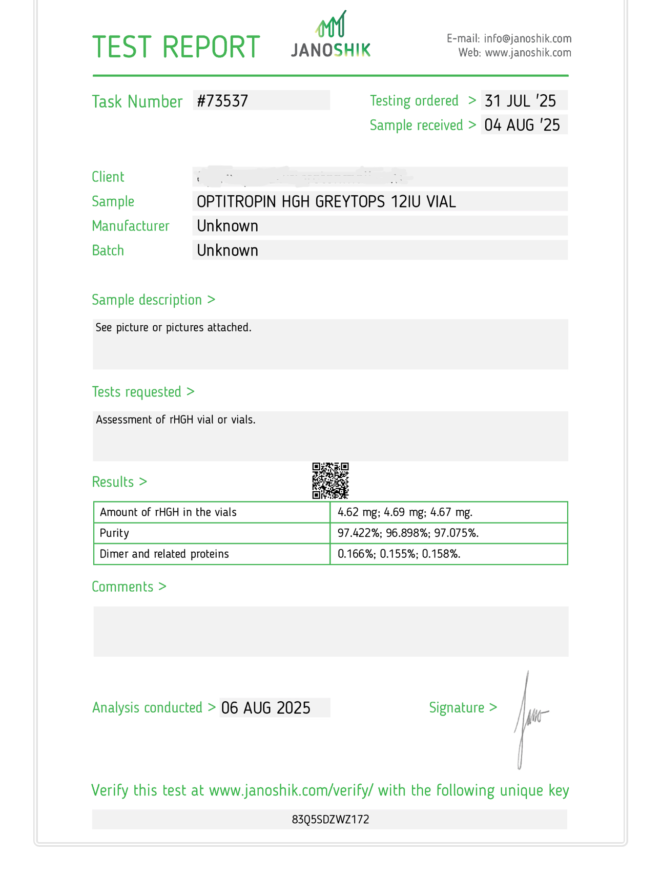 We offer a proven, high-quality growth hormone from the reputable company Optitropin.
